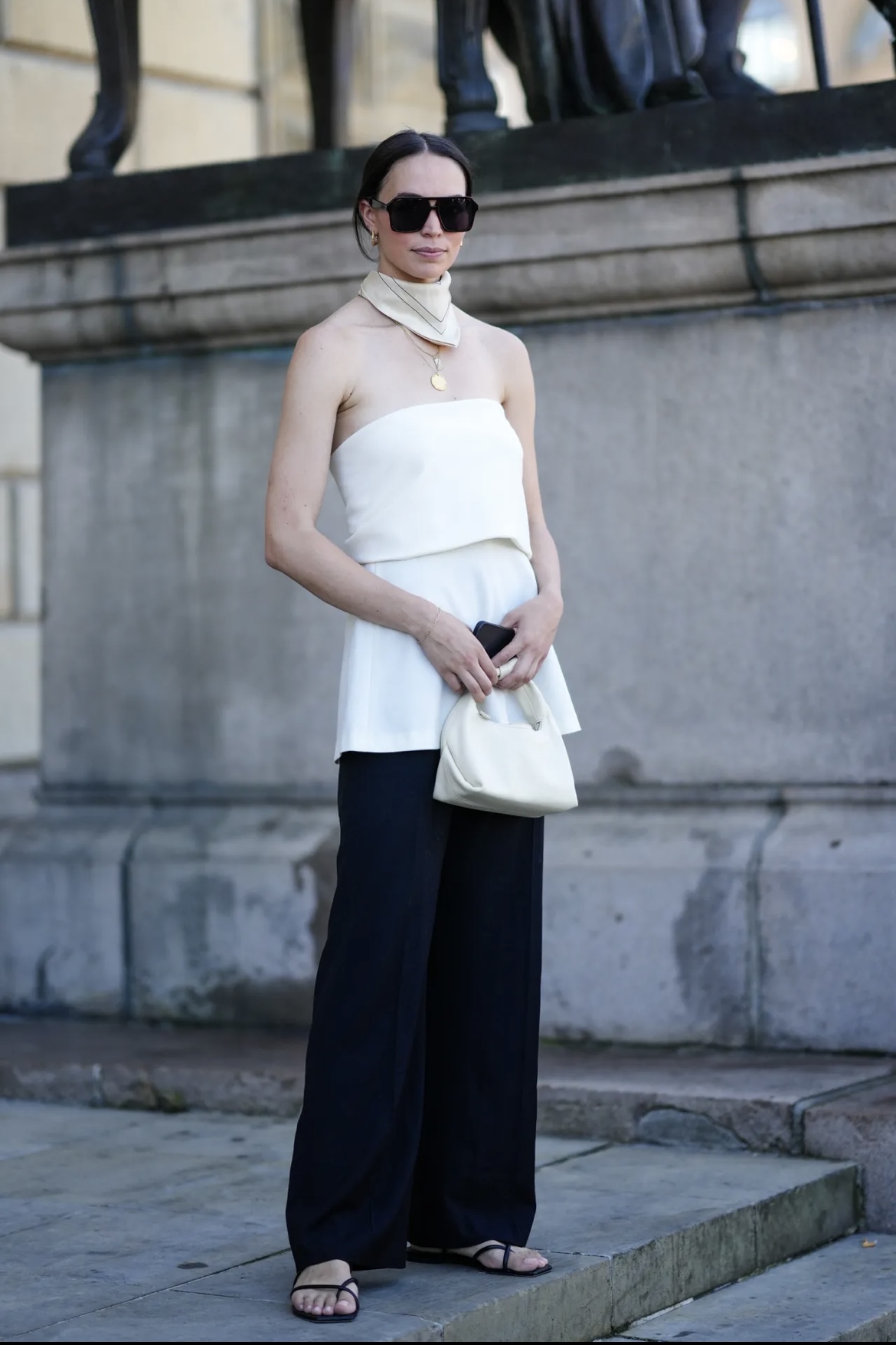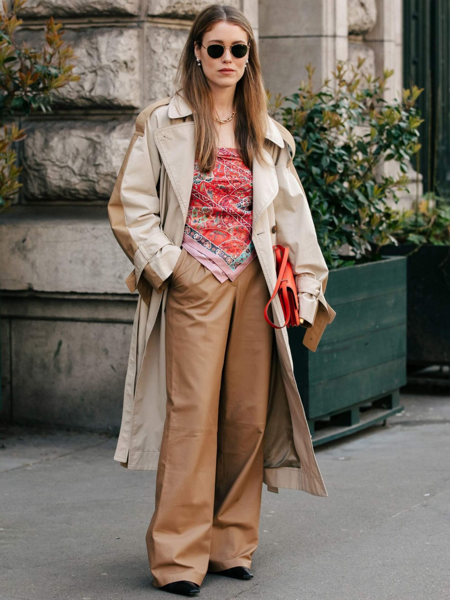Pero el poder real del pañuelo de seda no solo está en su historia, sino en cómo se ha adaptado al presente. Puede usarse anudado al cuello en un estilo más clásico, como bandana en la cabeza, amarrarlo a la asa de un bolso, convertirse en cinturón o incluso como un top de verano. Su textura liviana permite jugar con volúmenes y transparencias: sobre tops básicos para añadir sofisticación, con chaquetas de corte oversize para suavizar la rigidez, o debajo de prendas minimalistas para dar contraste y color. Su versatilidad lo hace ideal tanto para el día como para la noche, sin perder su carácter.