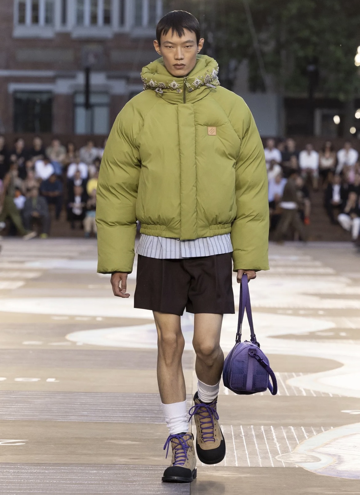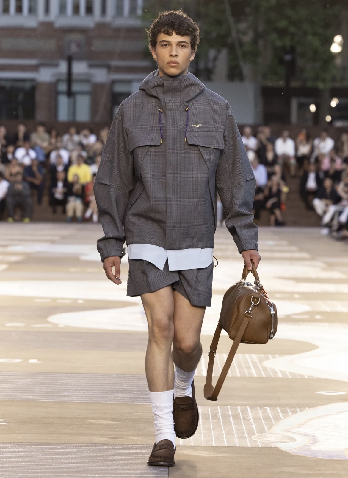 El desfile masculino de la temporada Spring Summer 2026 de Louis Vuitton, bajo la dirección creativa de Pharrell Williams, se celebró el 24 de junio en la plaza del Centre Pompidou en París. Con un impactante montaje en forma de tablero de serpientes y escaleras inspirado en el antiguo juego indio Moksha Patam, fue un show muy comentado por los medios. Contó con más de 60 looks que apostaron por tonos tierra, entre ellos terracota, índigo, y marrones, la colección reflejó una estética de quiet luxury, con siluetas relajadas, sutiles referencias al patchwork hindú y una reinterpretación moderna de la alta gama.