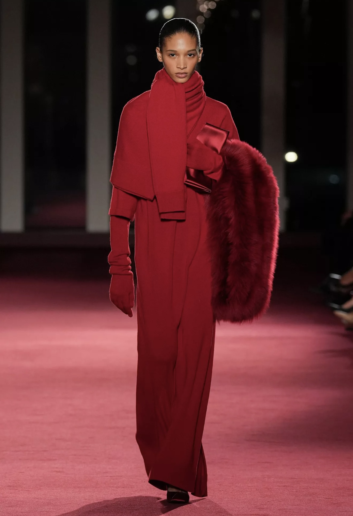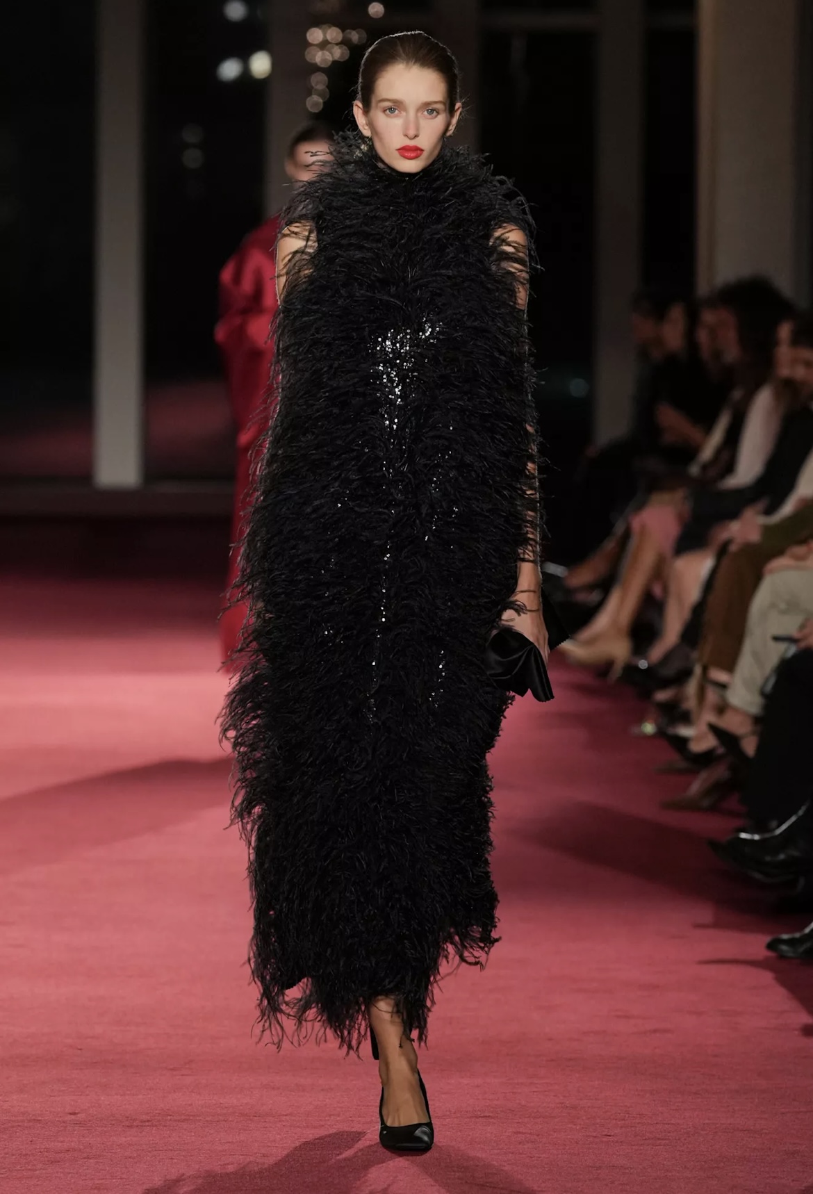 La banda sonora acompañó el desfile con canciones de Sia y Rihanna, combinados con momentos de Swan Lake que ampliaron la escena teatral. Entre el público, figuras como Christy Turlington y Dakota Fanning compartieron fila con rostros de la industria, clientas históricas y personalidades del círculo cultural. El evento celebró la pertenencia y la continuidad, pero también la vigencia, en una ciudad que ha sido plataforma y hogar del diseñador desde el primer día.