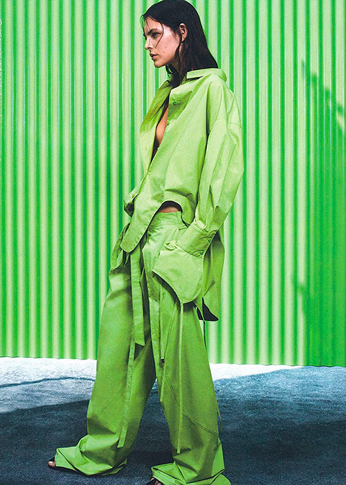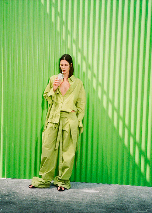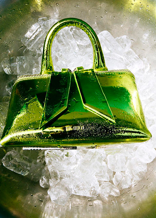 No cualquier verde, claro; si no, aquel que fluctúa entre el apple y lime green. Tonalidades frescas, ligeras y más bien asociadas a la primavera. Tal vez, la esencia que quieren instaurar las diseñadoras que suelen deleitarse por las altas temperaturas, representándolo mediante las imágenes de la campaña. Detrás del lente, Boji (@chilldays), quien plasma el espíritu de la casa en postales atenuadas por el sol y donde el verde deslumbra a través del atardecer. Las sandalias Rem en un llamativo e intenso verde manzana que fluye con las latas del fondo o la mini cartera Meet the Friday en un nuevo y ácido verde metálico. Lentejuelas para el día y un cobertor para autos que invita a posarse sobre él mientras la siempre intensa paleta de The Attico contrasta con la fabrica otoñal. El glamour y la fiesta italiana reinventado con los toques de la calle más alta.