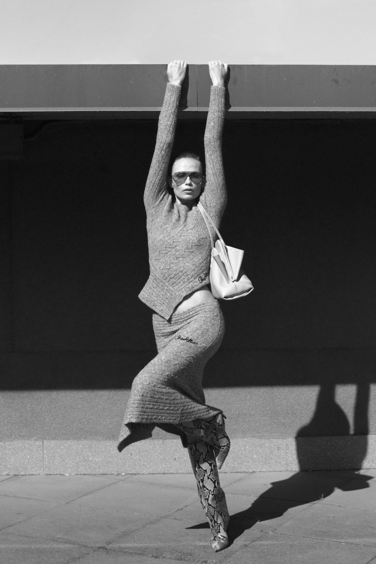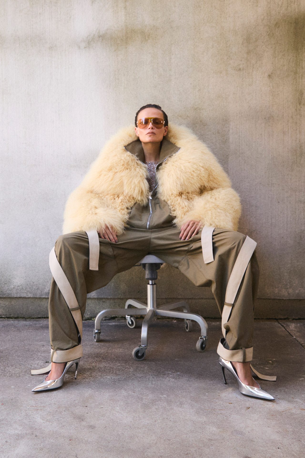 Ambrosio y Tordini no diseñan para una mujer coherente, sino para una mujer múltiple. Cada look es una versión posible, una actitud encarnada. Lo lúdico convive con lo agresivo, lo dulce con lo crudo. Un suéter peludo en rosa pastel, que podría parecer inocente, revela una textura áspera, casi salvaje. Es un recordatorio: nada aquí es lo que parece a simple vista. La colección invita a mirar dos veces, a leer entre líneas, como si cada prenda llevara un subtexto.
