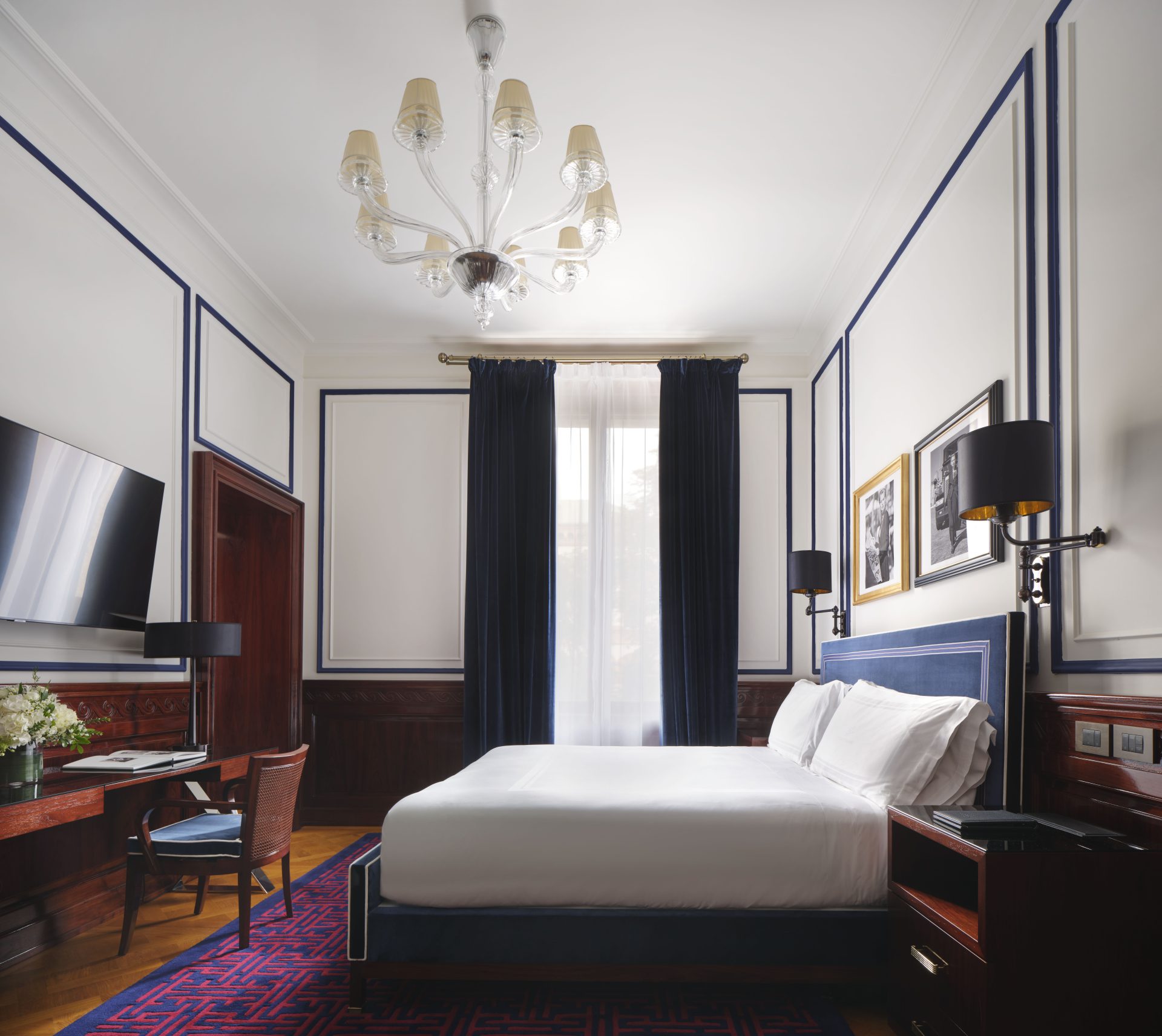 Aunque el club es exclusivo para miembros, la propiedad cuenta con 15 habitaciones —doce cuartos y tres suites— disponibles para no miembros. Durante su estadía, los huéspedes tienen acceso completo a todas las comodidades del club. Diseñadas por el aclamado arquitecto florentino Michele Bönan, las habitaciones reflejan el equilibrio perfecto entre la elegancia italiana atemporal y el confort contemporáneo. Pisos de roble, boiseries de nogal espejado y baños revestidos en mármol Cipollino contrastan con papeles de pared en tonos azules, creando una atmósfera cálida y exclusiva. Los huéspedes del hotel disfrutan del mismo servicio atento y discreto que se ofrece a los miembros, incluyendo servicio de mayordomo, coche de cortesía, estacionamiento con valet, concierge 24 horas y minibar con bebidas no alcohólicas y aperitivos incluidos en la tarifa.