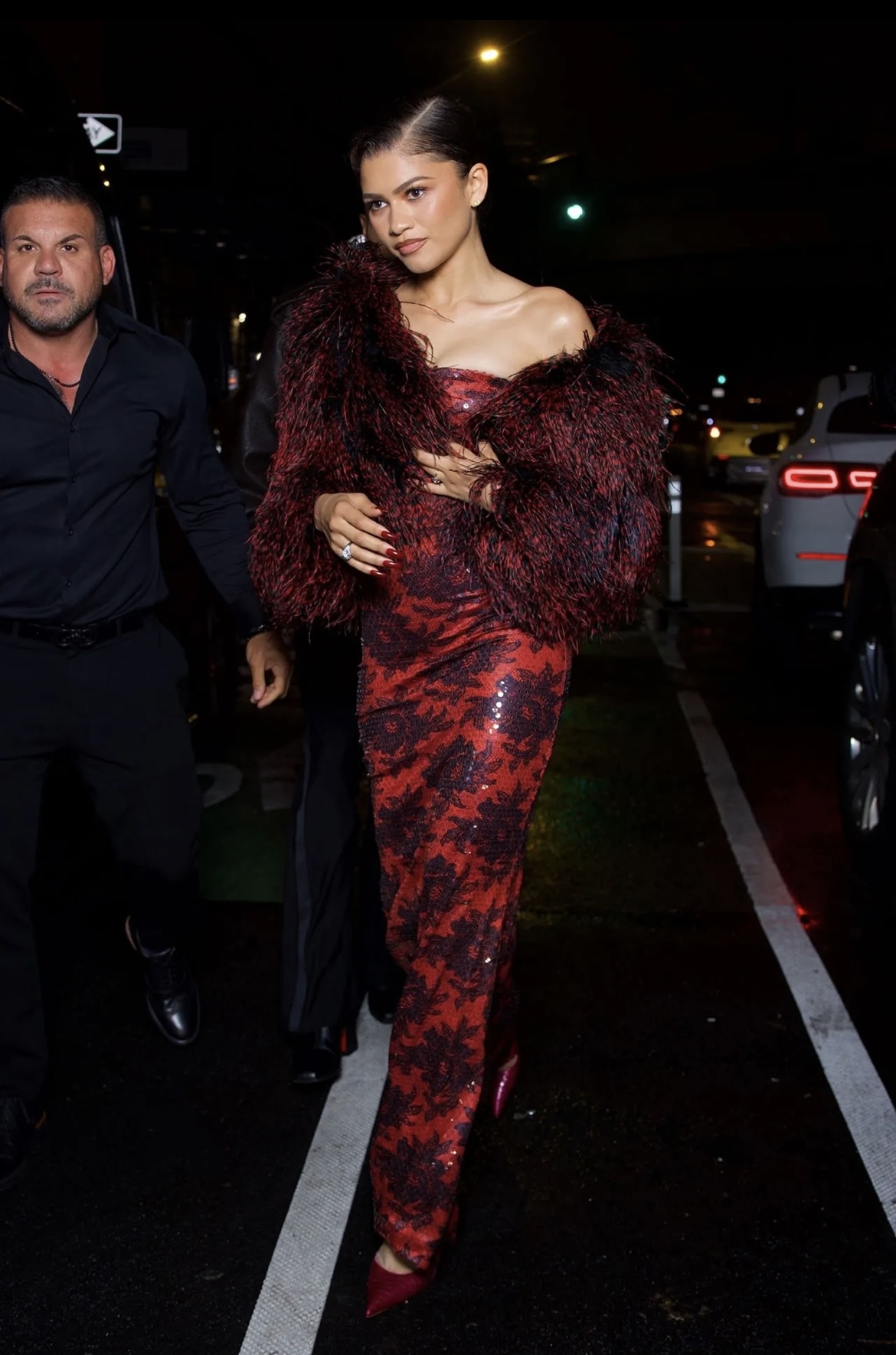 Los outfits más dramáticos continuaron con Hailey Bieber, quien abandonó su minimalismo clásico para apostar por un vestido tipo corset de Dilara Findikoglu de color perla y confeccionado en satén. Ajustado, corto y con una vibra muy seductora, fue una muestra de cómo puede transformar su estética sin perder la elegancia que la caracteriza. Kendall Jenner, por otro lado, brilló con un conjunto de archivo de Mugler: una chaqueta con escote arquitectónico, falda midi y un gran sombrero. Todo en negro, sofisticado y nostálgico. Zendaya también robó miradas con un vestido rojo entallado, estampado con rosas negras y una chaqueta de plumas. Un guiño perfecto al glamour clásico de Hollywood.