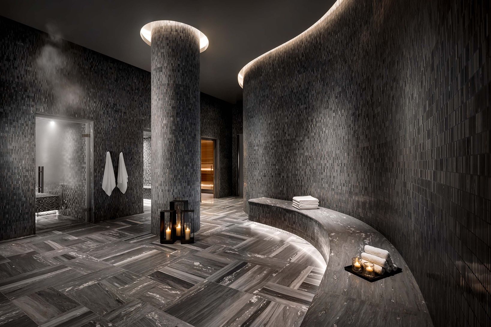 Inspirado en las antiguas termas romanas, este espacio de bienestar de 3.000 metros cuadrados se despliega en un edificio neoclásico. Entre sus detalles más singulares: ponchos en lugar de batas, una sauna con heno y lavanda, y una atmósfera sonora que invita a entrar en estado de relajación sin esfuerzo. Cada rincón fue pensado para desconectar desde la primera mirada.