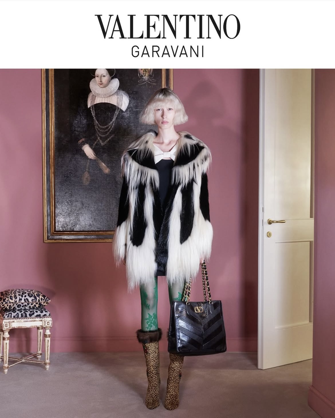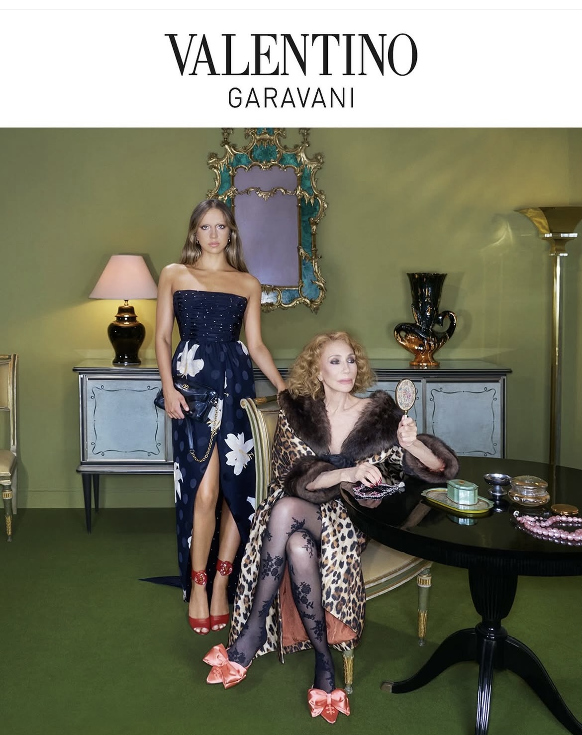 Los accesorios completan la narrativa visual con el sello más reconocible de la maison. Los bolsos se vuelven protagonistas de la campaña, convirtiéndose en la pieza clave de la temporada y reinterpretando el glamour clásico con un toque más moderno. Tacones con cristales, joyería minimalista y detalles como corbatas y cinturones acompañan los looks, reforzando la idea de una noche que no duerme. “Nocturne” no solo celebra la estética de Valentino, sino también la diversidad de rostros y estilos que hoy representan la moda contemporánea: más libre, más íntima y, sobre todo, más humana y divertida.