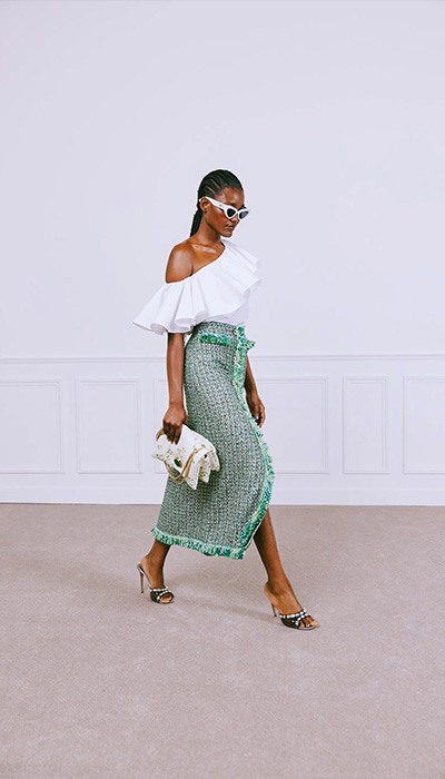 Una brisa fantasiosa, donde los vestidos cortos y largos se yuxtaponen con accesorios en negro. Romanticismo insubordinado que con motivos botánicos y florales hace del verano una experiencia nómade y hasta bohemia. Claro, siempre con una sofisticación que nace de telas exquisitas, fresca y genuinas. Precisamente, fue “el peso de la ligereza” la sensación que Valli quería transmitir; una imbuida por la excelencia y la facilidad de uso, aquel que permite lucir cada prenda tanto en la cotidianidad como en los matrimonios de verano. De acuerdo con el diseñador, la juventud prefiere vestirse sin preocuparse de las estaciones ni los momentos, siendo “la indiferencia terriblemente chic”. «No quieren ser vallas publicitarias con logotipos», agregó, celebrando la autoexpresión incluso cuando corta un vestido: “Dejo una especie de espacio libre dentro de él, que permite que la personalidad de quien lo use lo habite y lo haga suyo”.