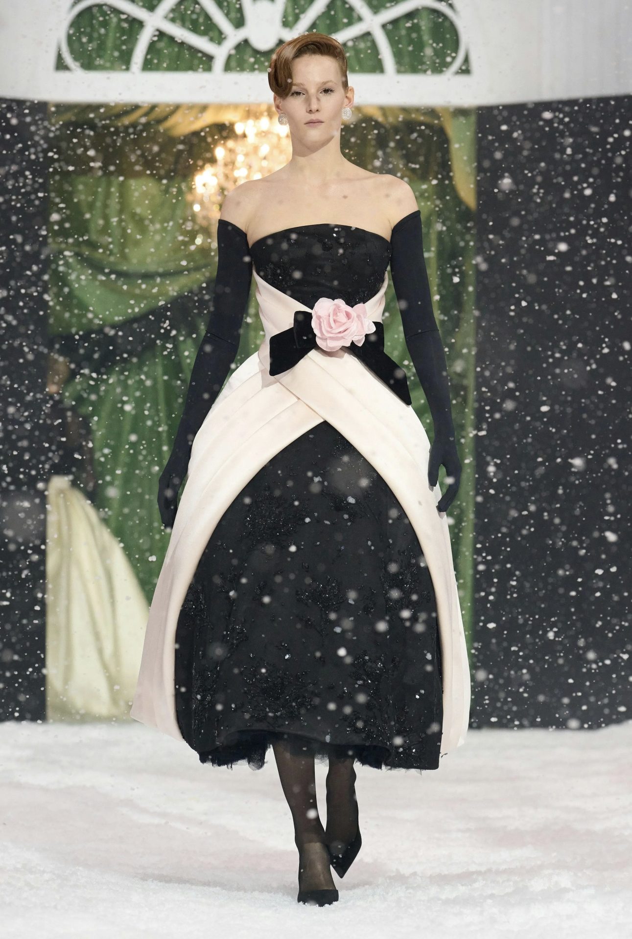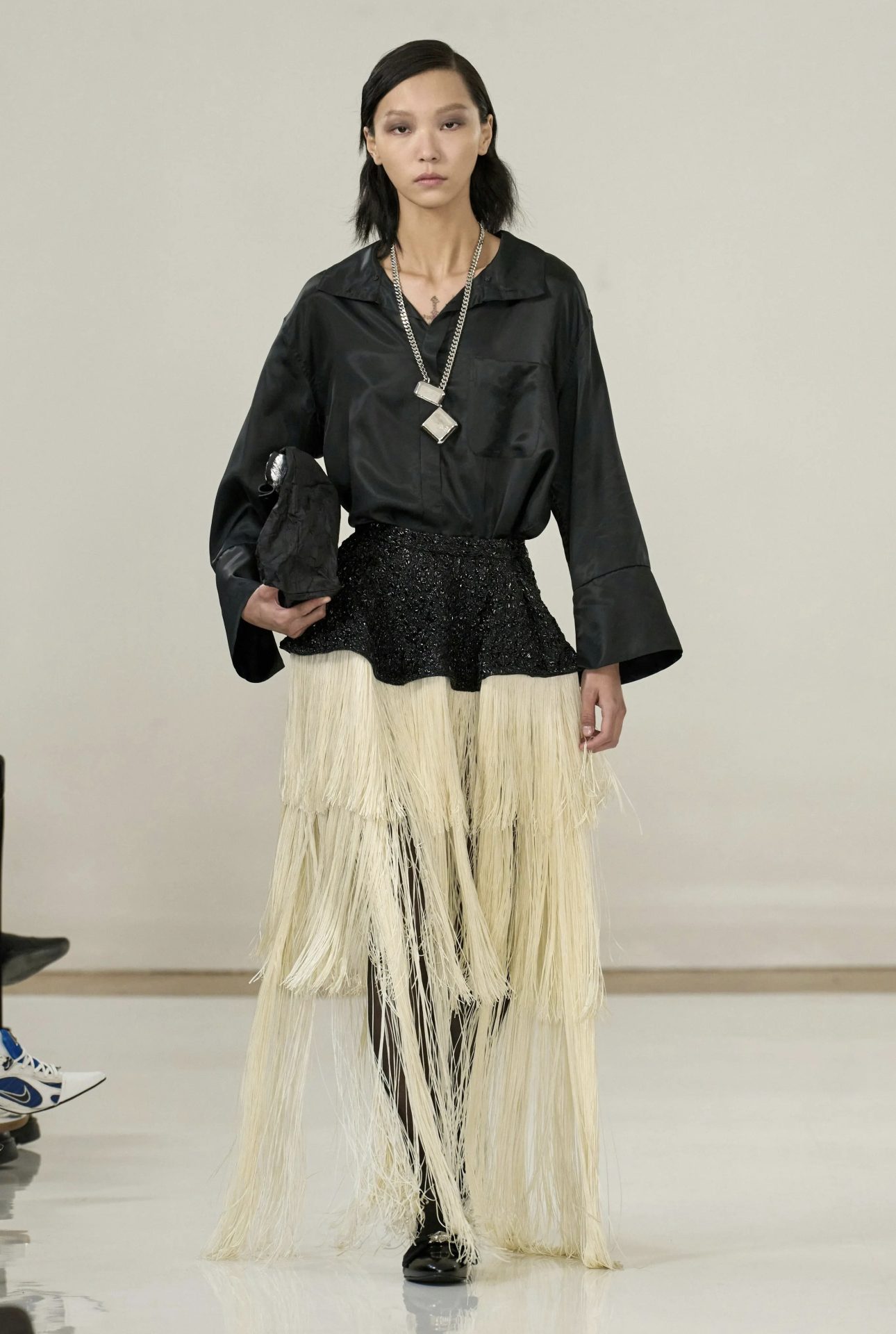 Otro accesorio que ha captado la atención es el regreso de los guantes de ópera, reinterpretados por diseñadores como Richard Quinn y Bora Aksu. Este elemento clásico y sofisticado ha sido modernizado con un enfoque contemporáneo, demostrando que las tendencias del pasado pueden reinventarse y recuperar protagonismo en la moda actual. Su impacto visual se intensifica con el largo: cuanto más extensos, mayor es su capacidad para transformar un look con dramatismo y elegancia. En cuanto a las texturas, el encaje se posiciona como un material imprescindible para la próxima temporada. Presente en prendas superiores e inferiores, esta tela no solo aporta un aire de feminidad y delicadeza, sino que también permite jugar con transparencias y contrastes. Firmas como Pauline DeJancourt y Di Petsa han apostado por su versatilidad, demostrando que el encaje puede trascender su uso tradicional en la lencería y consolidarse como un símbolo de sofisticación y carácter.