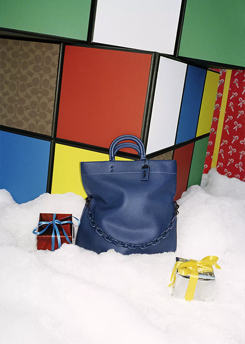 Muñecos y copos de nieve, regalos y u un arbusto con forma de dinosaurio decorado en el jardín son el escenario de los tres protagonistas que irradian la misma felicidad de un niño la mañana del 25 al momento de abrir los regalos alrededor del árbol. Para completar la campaña, Zoey Deutch posó con una chaqueta  de polar color crema con rayas beige, marrones y negras en los hombros, shorts con el monograma de la maison, un suéter con pingüinos y un sombrero peludo de pescador. El remate de la temporada navideña de Coach fue la revelación del primer destino de compras virtual, un concepto inspirado en una antigua tienda de la marca. Consiste en una experiencia inmersiva en la que los clientes podrán recorrer las salas temáticas e interactuar con la mascota de la firma, el dinosaurio Rexy.
