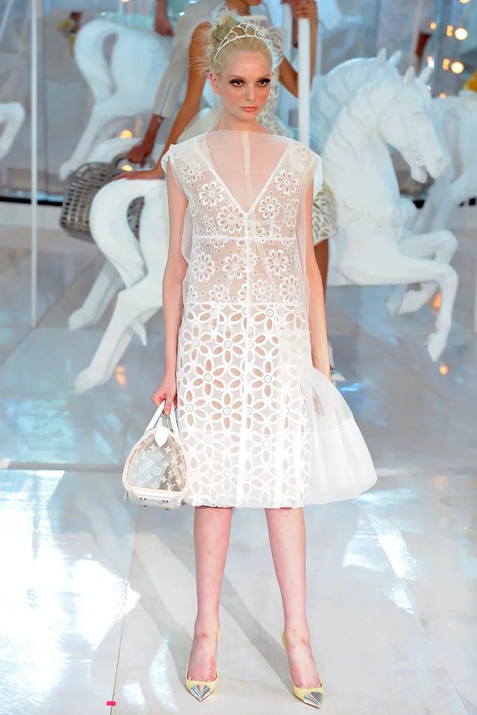 Si hablamos de épocas emblemáticas, sin duda, una de ellas es el paso de Marc Jacobs por Louis Vuitton. Durante 16 años, el icónico diseñador transformó la maison, llevándola a alturas inimaginables con su trabajo legendario. Con ideas desbordantes de creatividad, Jacobs nunca pasó desapercibido, lanzando colecciones llenas de glamour y desfiles que eran auténticas obras de arte. Hoy recordamos uno de esos momentos memorables: la colección Primavera-Verano 2012, donde un carrusel de tamaño real con corceles blancos fue el escenario perfecto mientras las modelos posaban y desfilaban sobre él.