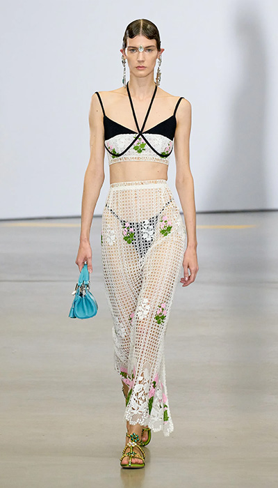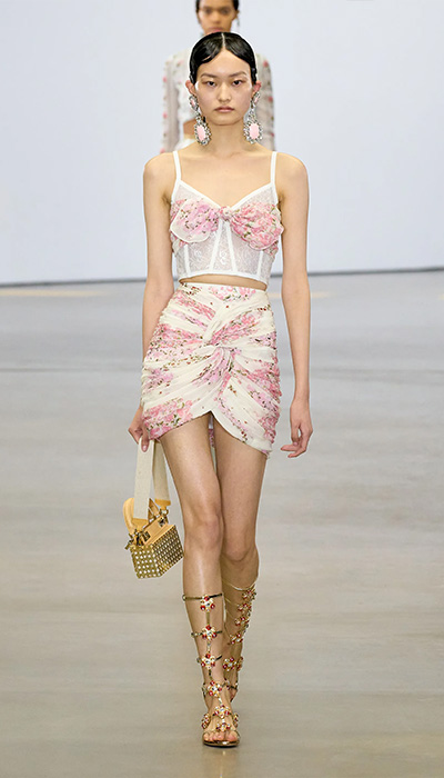 La campaña de Primavera-Verano 2023 de Giambattista Valli ha jugado a anudar y desanudar los cuerpos que fueron vestidos por uniones de tul. Los crops top fueron una de las prendas que predominó en el desfile, presentándose en tenidas con minifaldas y tejidos. Los maxis pendientes también fueron otra de las piezas claves, especialmente, apoderándose de looks que cobraron todo el protagonismo. Y también, con un prêt-à-porter de alta costura ha dejado a todos sorprendidos, ya sea con aquella ineludible feminidad o con una relajación repleta de colores con olor, sabor y textura.