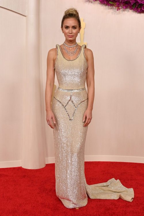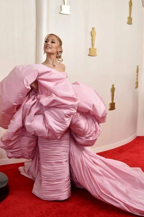 La actriz Margot Robbie, se alejó por completo de su papel como Barbie y despidió el rosa. Lució un sobrio pero elegante vestido de Versace que se ajustaba a su figura. El look más impactante de la noche fue el de la cantante de pop Ariana Grande, que vistió un vestido palo rosa de grandes volúmenes de la firma Giambattista Valli. Anya Taylor, también se inclinó por los cristales y plateados con un impresionante vestido de alta costura de Dior. Así también la actriz Emily Blunt, que deslumbró con un traje de brillos, lentejuelas y hombros rígidos de Schiaparelli. La actriz de Euphoria, Zendaya siempre destaca en la pasarela y esta vez confió en Armani Privé, con un vestido ajustado con tonos metalizados, y un delicado ajuste en la cintura.