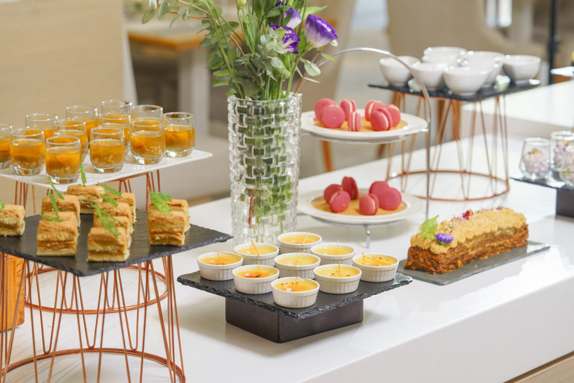 El brunch ofrece estaciones de platos fríos y calientes con énfasis en productos del mar, pescados y mariscos frescos, ensaladas con ingredientes de temporada, frutas frescas y una atractiva mesa de postres que corona la experiencia. Todo esto acompañado por una selección ilimitada de espumantes, vinos, spritz, pisco sour y bebestibles sin alcohol, creando un ambiente ideal tanto para reuniones íntimas como para celebraciones más festivas.