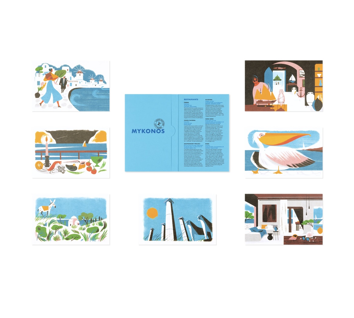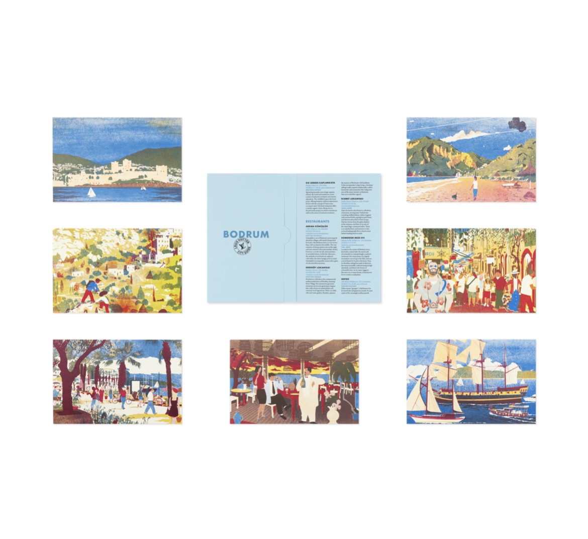 El formato de bolsillo y las ilustraciones originales convierten a esta colección en un objeto perfecto para llevar en tu maleta, pero también para hojear desde la playa o en el avión. Vincenzo Sorrentino en Capri, Jade Jagger en Ibiza, Marissa Taboulchanas en Mykonos y Pierre Roinson en Saint-Tropez son algunos de los perfiles que construyen sus rutas personales con lugares que van desde talleres de cerámica y calles escondidas hasta restaurantes con historia o boutiques artesanales. Asimismo, artistas como Virginie Morgand y Muhammad Fatchurofi reinterpretan visualmente cada destino con una exquisita sensibilidad editorial.