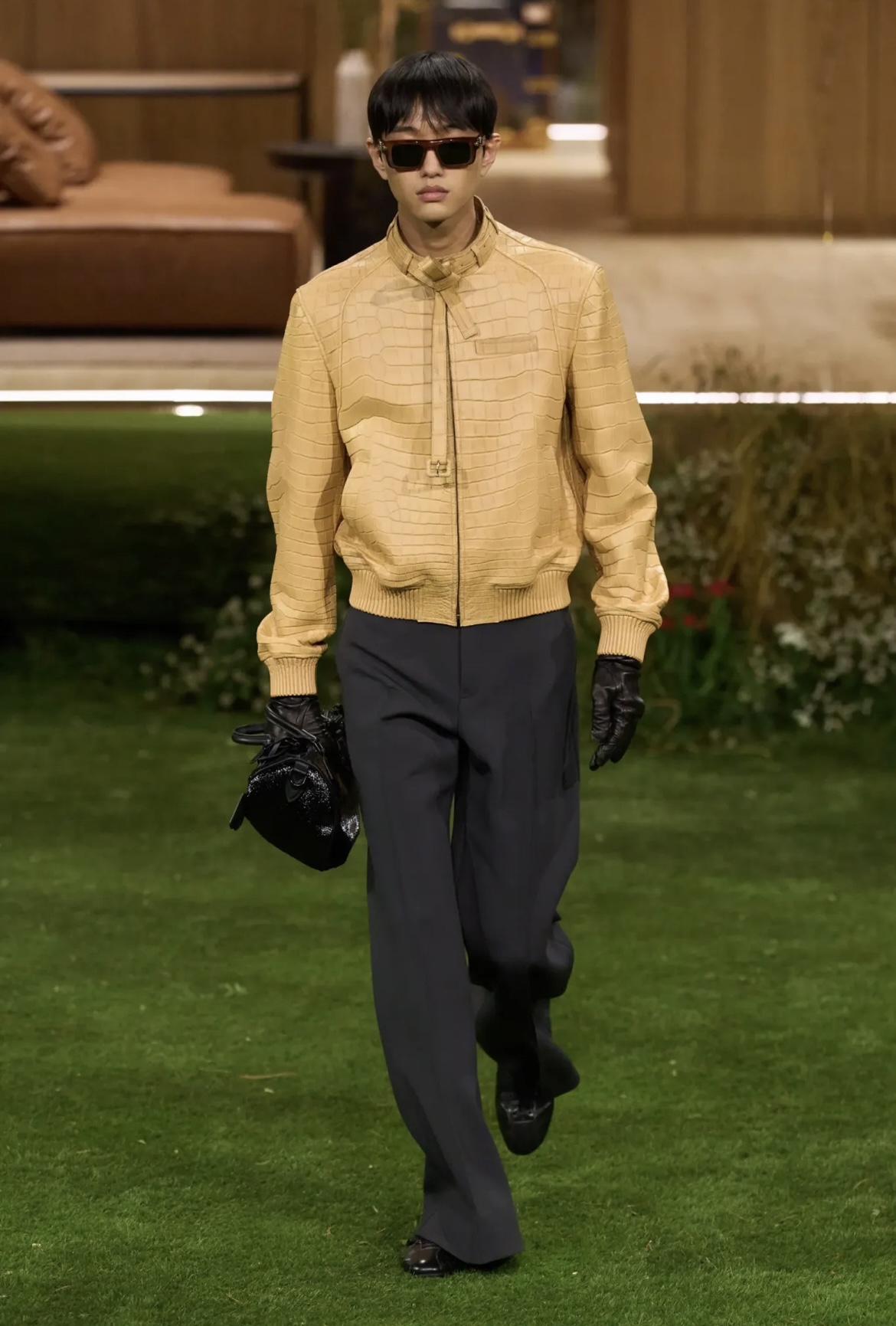 En el marco de la Semana de la Moda Masculina de París, Louis Vuitton presentó su colección Fall 2026, destacando una vez más el rumbo creativo de Pharrell Williams al frente de la línea. El desfile se realizó en la Fondation Louis Vuitton, el icónico museo de arte contemporáneo diseñado por Frank Gehry, específicamente en una estructura arquitectónica minimalista y transparente, titulada como “DROPHAUS”. Se trata de una casa moderna de cristal y madera creada por Pharrell Williams junto a la firma de diseño NOT A HOTEL. Esta casa prefabricada, ubicada en el jardín interior del museo, se convirtió en el corazón del show, donde los modelos caminaron y actuaron como si se tratara de una escena de la vida cotidiana, elevando la experiencia para los asistentes.