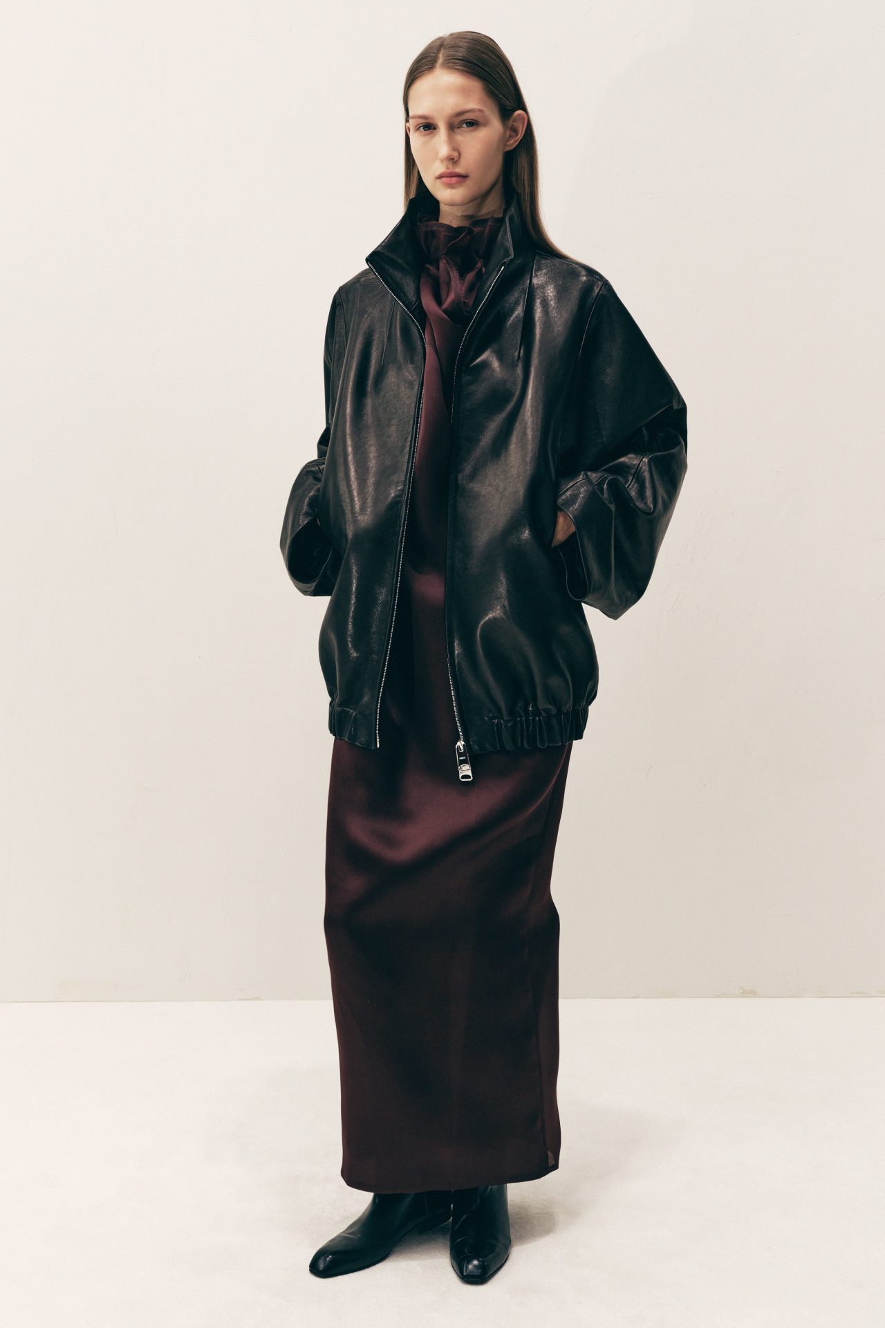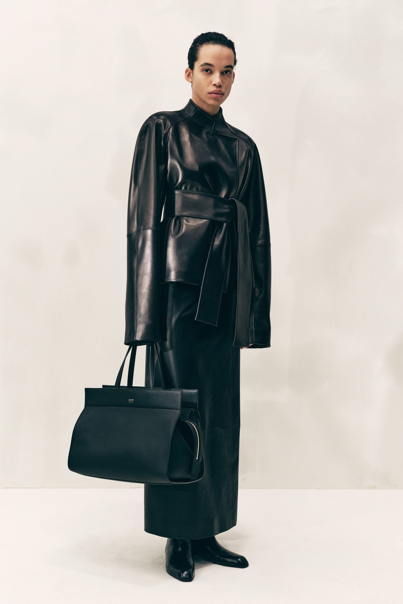 Además, Khaite colabora con Inversa, una compañía de Florida que transforma las pieles de serpientes invasoras de los Everglades en materiales de lujo, y con artesanos de Madagascar que elaboran a mano bolsos tejidos con asas de cuero. Estas colaboraciones refuerzan el compromiso de la marca con prácticas responsables y artesanía excepcional.Holstein, una amante declarada de los estilos de los años 80 y 90, incorpora en esta colección una serie de piezas que evocan esa época con un enfoque contemporáneo. Un bomber de cuero oversize con epaulettes exagerados y bolsillos funcionales destaca como una pieza clave, combinando estética retro con utilidad moderna.