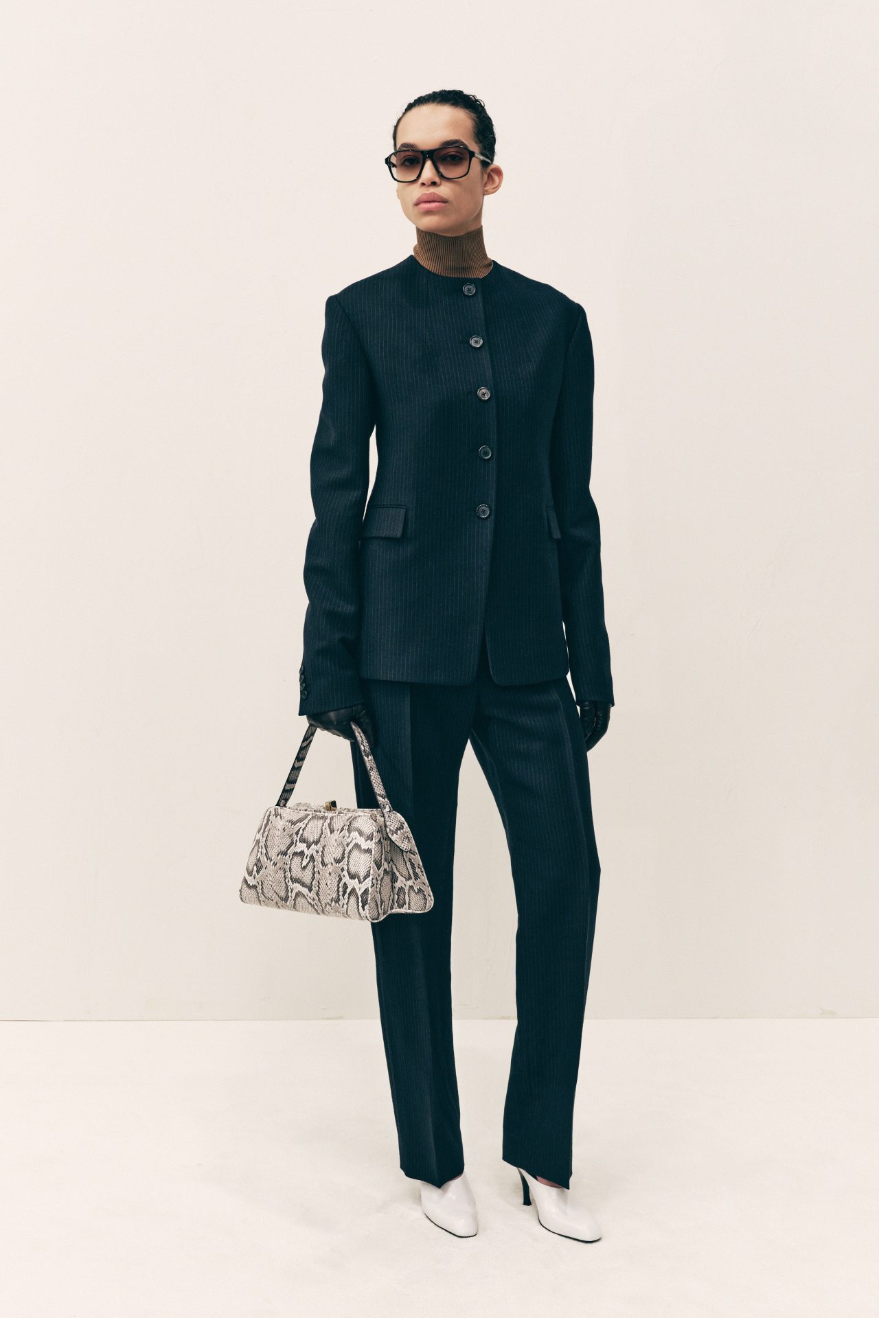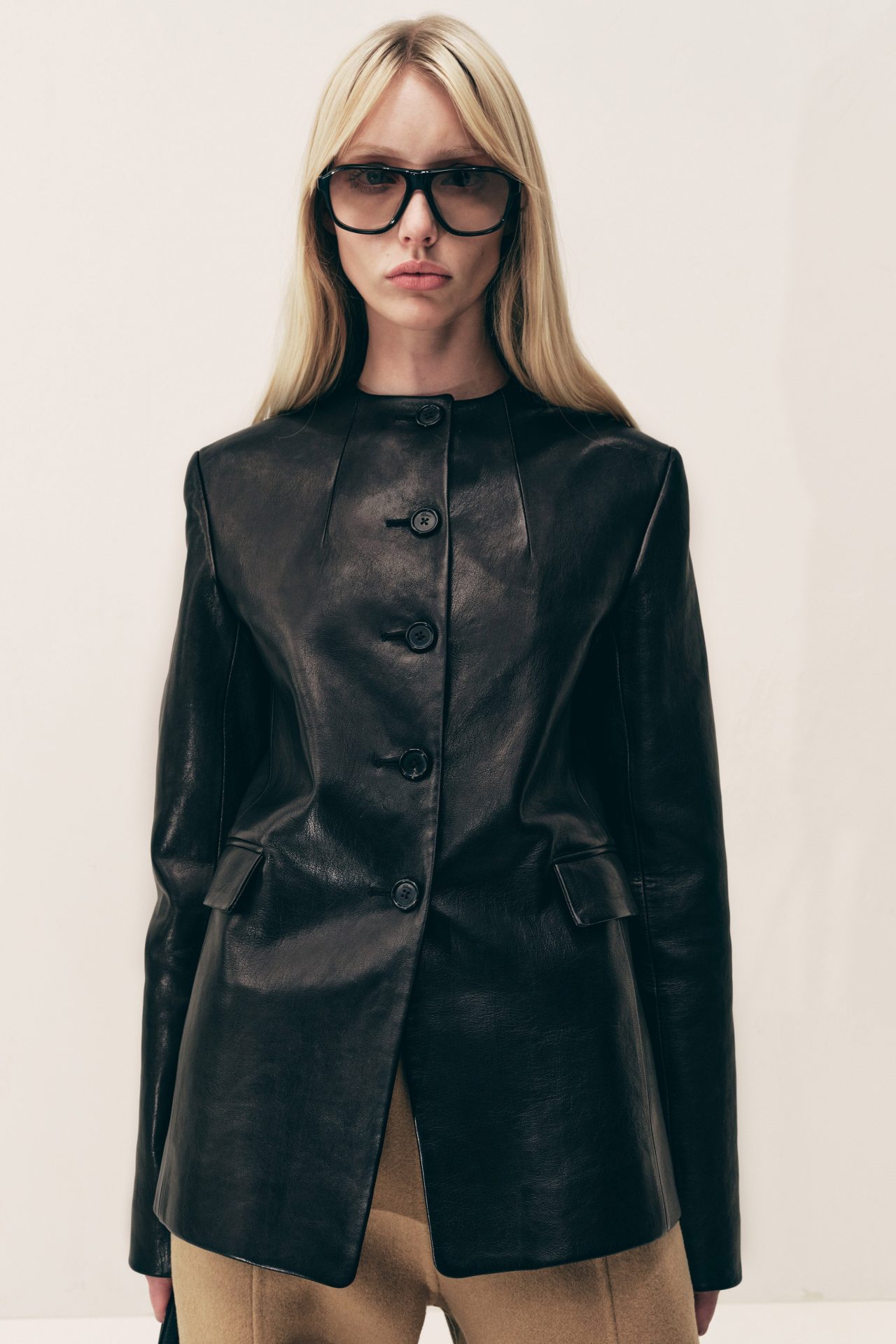 Un aspecto novedoso de esta temporada es la incursión de Khaite en los accesorios ópticos. En colaboración con Oliver Peoples, Holstein presenta una línea de anteojos que equilibra diseño y funcionalidad, consolidando aún más el posicionamiento de la marca en el ámbito de la alta gama cotidiana. La colección Pre-Fall 2025 de Khaite no es solo un conjunto de prendas, sino una exploración profunda de la dualidad entre lo uptown y lo downtown, entre lo estructurado y lo relajado. Catherine Holstein demuestra que la moda puede ser tanto un refugio como una declaración, combinando tradición, modernidad y responsabilidad en un equilibrio que solo Khaite puede lograr. Cortesía Khaite