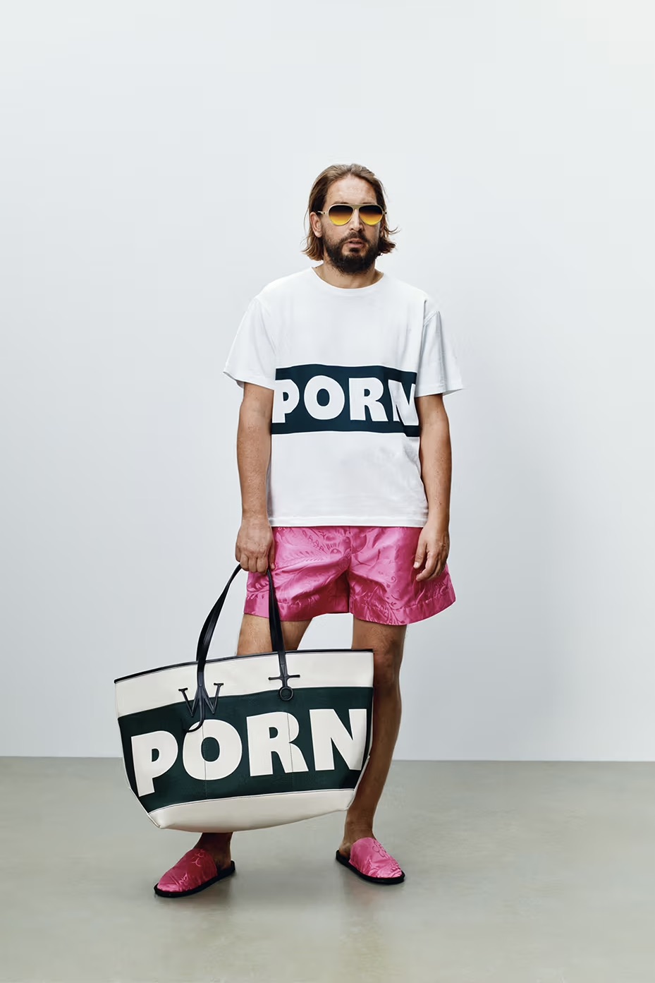 La elección de materiales refuerza esta narrativa del hacer consciente: knitwear irlandés y escocés, damasco de seda inglés y denim japonés de alta calidad hablan de una moda que valora el origen y el saber hacer. Esa misma lógica se extiende al hogar, con una línea de homeware desarrollada junto a artesanos históricos, como los objetos de roble de Mouseman Craftsmen o los pisapapeles Bronze Peach creados junto a Luca Guadagnino. El lookbook, protagonizado por colaboradores y personas cercanas al diseñador, cierra el círculo: más que imponer tendencias, JW Anderson FW26 subraya el valor cultural, humano y emocional que existe detrás de cada creación.