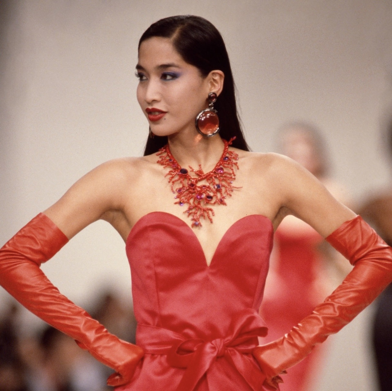 Durante los años 80 y principios de los 90, Bayle fue una figura central en los desfiles de Thierry Mugler, Christian Lacroix, Oscar de la Renta, Versace y muchos otros. Fue la musa de Mugler, la favorita de Gianni Versace y una habitual en las pasarelas de Chanel y Dior. Desfilaba hasta nueve veces por día en las fashion weeks y su famoso “Anna Bayle Walk”, descrito como si aplastara colillas de cigarro con cada paso, fue objeto de fascinación. Sus imágenes adornaron portadas de revistas internacionales como Harper’s Bazaar y Vogue, y su cabello negro, largo y sedoso se convirtió en una firma visual imposible de ignorar. En una época que limitaba la representación asiática a lo exótico, Bayle tomó ese estereotipo y lo convirtió en un emblema de poder.