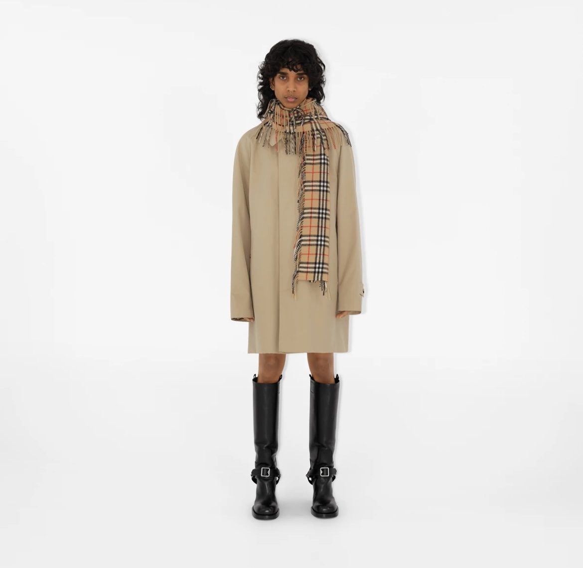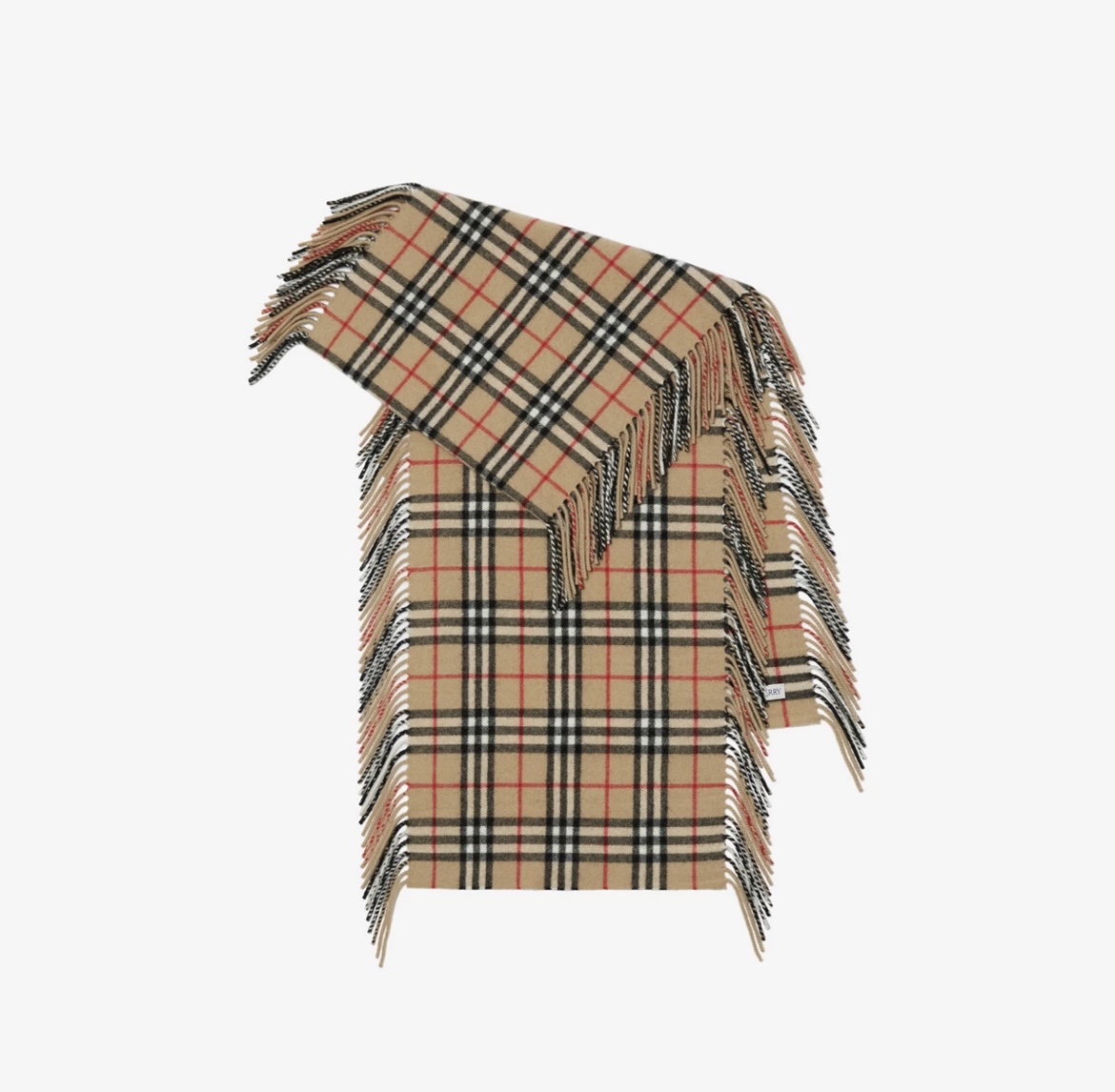 Burberry renueva su icónica bufanda de cachemira con un enfoque más liviano y neutro. La Check Cashmere Happy Scarf mantiene el inconfundible patrón de cuadros en tonos beige, negro, rojo y blanco, tejidos en Escocia con técnicas tradicionales. Su suavidad extrema, esto gracias a un proceso artesanal de tejido y lavado, la convierte en una pieza infaltable para los días fríos. Atemporal, elegante y versátil, esta bufanda añade el toque exacto de elegancia británica a cualquier look, reafirmando que los clásicos, cuando están bien hechos, siguen siendo el mejor accesorio.