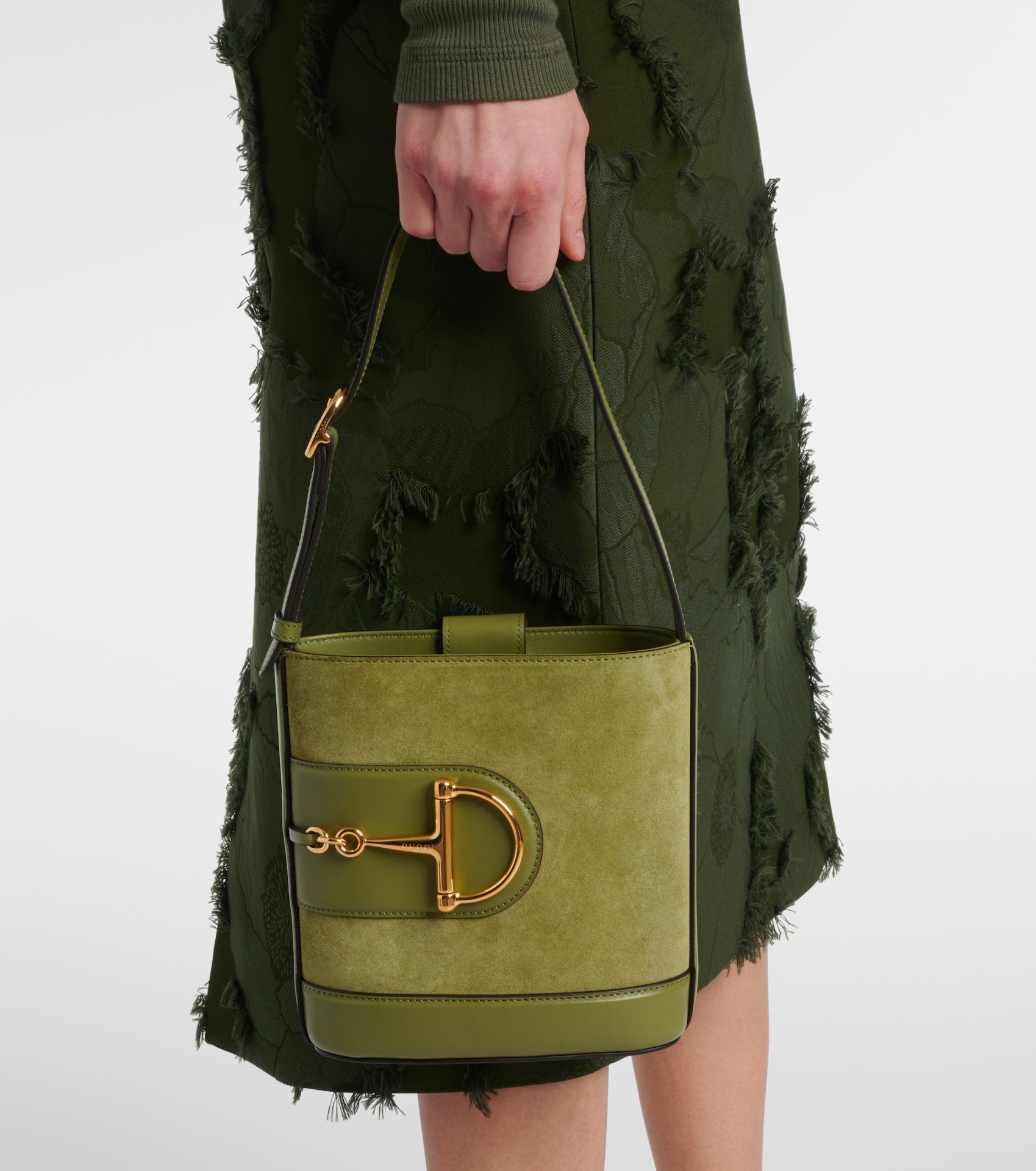 Este año, el ante se ha consolidado como el material estrella en chaquetas, botas y, por supuesto, bolsos. Y este mini bucket de Gucci es la mejor apuesta para quienes buscan sumarse a la tendencia sin renunciar a la funcionalidad: compacto pero espacioso, con un interior forrado en lino y un bolsillo con cremallera para la organización perfecta. Combínalo con maxi abrigos de lana, vestidos fluidos o denim de corte recto para un look de inspiración setentera que dominará el street style. ¿El detalle final? Unos botines de gamuza a juego y estarás lista para conquistar el otoño con un bolso que, más que una compra, es una inversión en estilo.