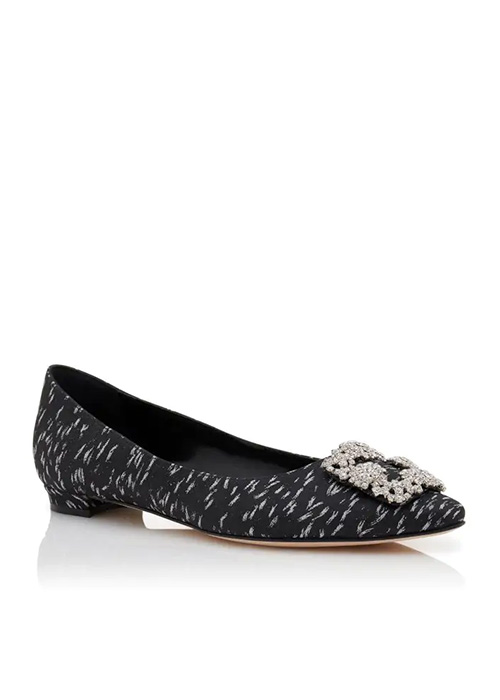 Los Hangisi siempre son una buena opción cuando hablamos de elegancia y comodidad. Su estilo de ballerina sirve para cualquier ocasión, ya sea para una reunión o una fiesta y, sin duda, es un modelo que debe estar en el closet. En especial cuando trata de un Malo Blahnik. Entre el sinfín de colores y acabados que ofrece la marca destaca el “Black Jacquard Jewel Buckle Flat”. Una pieza única, cuyos especiales y únicos adornos se asemejan a los retratos de la realeza inspirada en el siglo XVII. El negro, blanco y rojo se apoderan de un diseño tan clásico como genuino y versátil. Además, con una deslumbrante hebilla cuadrada y con cristales plateados que representan tanto la opulencia de la firma como de la realeza que los ha inspirado. Una parte superior de seda, una suela de piel de becerro y u forro de cabritilla. Esos son textiles que ocultan lo 10 mm de tacón de estos Hingisidlat.