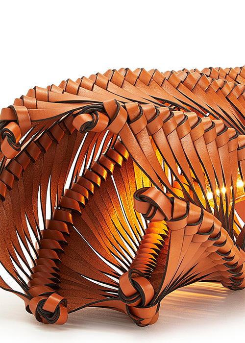 Una inversión a futuro y un exquisito rincón de calidez e iluminación dentro de tu hogar. Esta lámpara te conquista a primera vista y, en realidad, no necesita demasiado para hacerlo. Sus espirales trenzados a mano son la representación del savoir-faire artesanal de Loewe. Detrás del diseño, la artista gallega Idoia Cuesta, quien ha empleado finas y tradicionales técnicas asiáticas para hilar la lámpara con nudos correlativos que aportan ese hipnótico efecto curvo. Está hecha con cintas de piel de ternera y viene en dos colores: bronce y castaño.