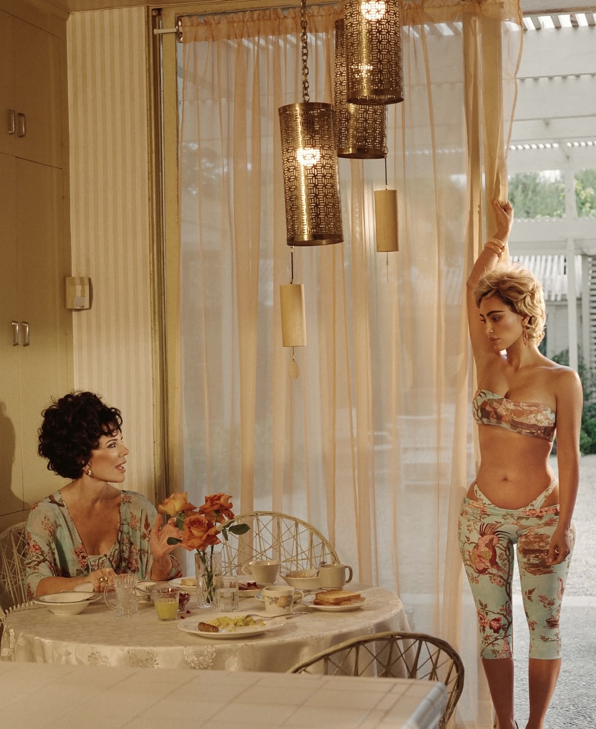 La campaña, dirigida por la fotógrafa y artista visual Nadia Lee Cohen, está protagonizada por Kim y Kris Jenner, en una serie de imágenes con estética retro, pelucas rubias y escenarios cinematográficos. La vibra de la campaña recuerda a los anuncios de los 90, pero con una ironía que refuerza el tono lúdico de la cápsula. Las siluetas van desde bikinis de triángulo, enteritos con cintas y catsuits, hasta caftanes vaporosos y vestidos de red. Cada pieza busca capturar una sensualidad atrevida, sin sacrificar soporte ni funcionalidad, o sea, fiel a la narrativa que busca proyectar SKIMS desde su origen.