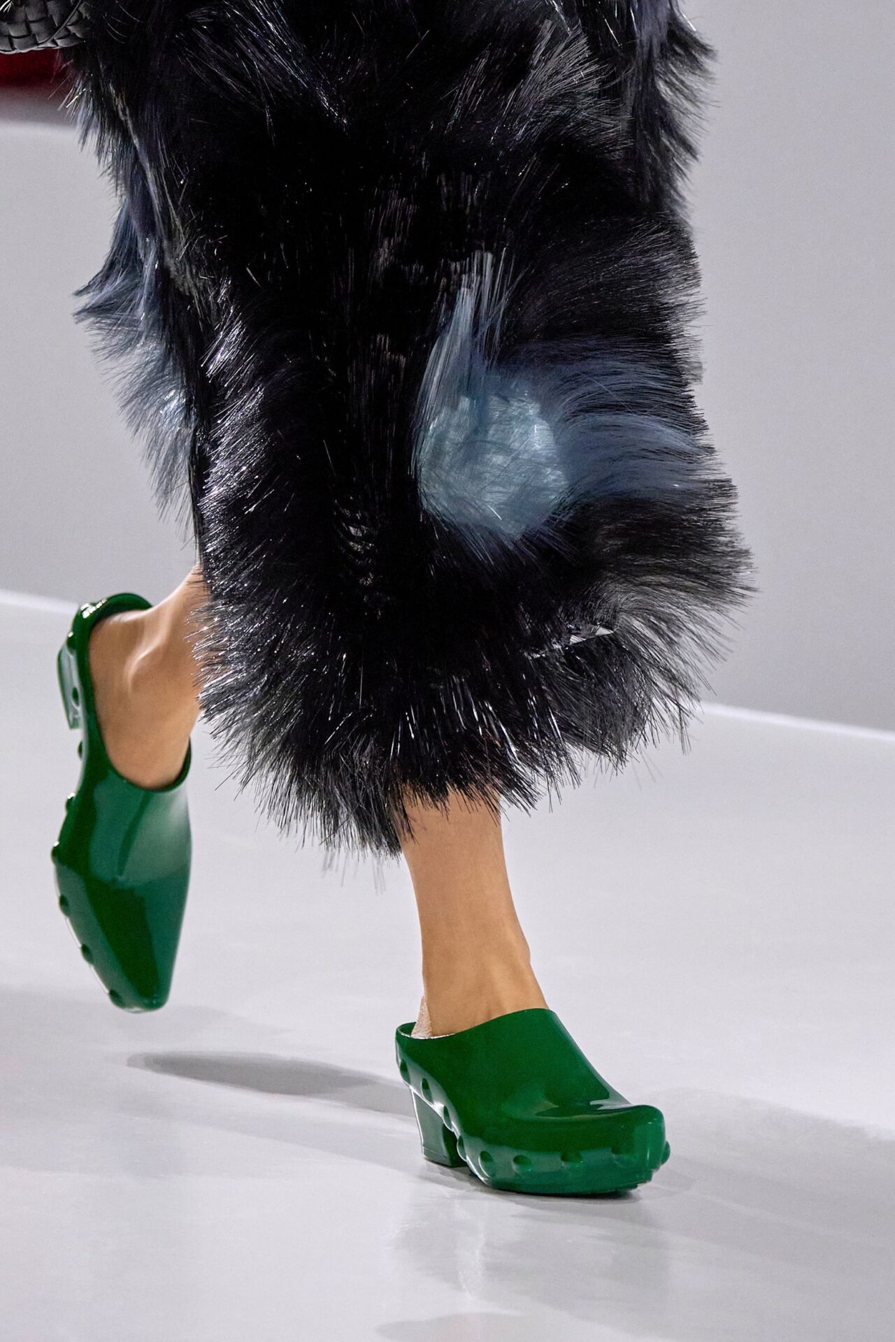 El calzado de la próxima temporada no está hecho para pasar desapercibido. Las clásicas flip-flops o sandalias de dedo saltan de la playa a la calle para convertirse en la nueva obsesión, especialmente las versiones con plataforma de Balenciaga o con puntas futuristas como las de Melitta Baumeister, consolidando la visión que también compartieron Chloé y Balmain. Y si hablamos de regresos triunfales, los zuecos son los nuevos protagonistas. Bottega Veneta los pintó de verde o plateado, Victoria Beckham les dio un aire western y Louis Vuitton los hizo aún más especiales con pequeños cinturones.