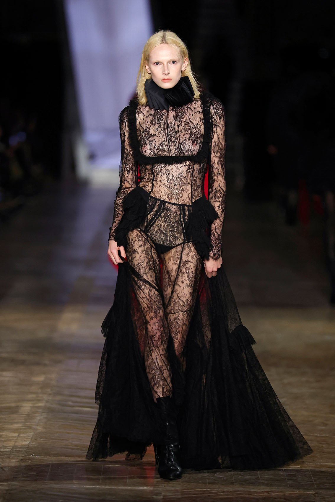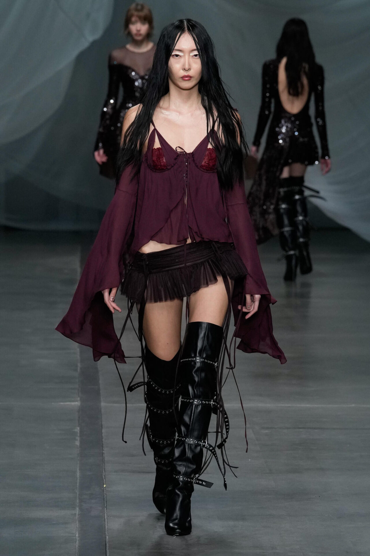 En 2025, el soft goth se consolida como una de las estéticas más influyentes de la temporada, gracias a su capacidad de reinterpretar el imaginario gótico desde un enfoque delicado y actual. Lo que antes pertenecía al terreno punk o emo (más crudo, rebelde e intenso) hoy se transforma en una propuesta mucho más depurada y cercana a la elegancia de pasarela. La clave está en cómo la estética mezcla melancolía y sensualidad sin caer en los excesos: terciopelos que aportan profundidad, encajes que revelan misterio y transparencias que construyen una narrativa oscura, pero sofisticada. Todo dialoga con un espíritu que privilegia la feminidad contemporánea, fusionando carácter y sensibilidad.
