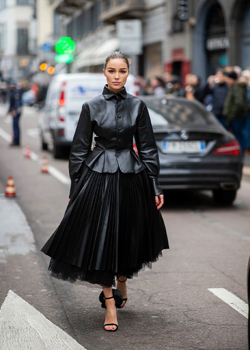 Ahora sí, derribemos un mito muy común que gira alrededor del look total black. No por ir con un atuendo monocromático, te verás aburrida, simple o poco arriesgada. Y es que, a pesar de ir con un solo color, podemos combinar texturas y estampados. Por ejemplo: mezclar fake leather, lentejuelas, prendas opacas, utilizar oversize, flecos o simplemente, probar las tendencias que arrasan en el street style, pero todo en negro. La idea es jugar con piezas distintas para armar un conjunto instagrameable. Asimismo, puedes optar por elevar tu outfit con accesorios, o un incorporar un pop of colour.