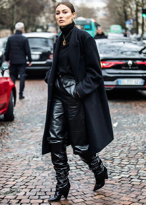 The black is a new black. El negro jamás pasará de moda, y para sobresalir solo debemos conocer nuestro cuerpo y saber qué piezas nos favorecen más. Por ejemplo, puedes optar por uno pantalón de estilo sastre. Combínalo con una blusa con textura y completa el atuendo con un abrigo, accesorios, zapatos altos y nunca olvides tus anteojos– son un must have–. La idea es jugar con las texturas para elevar un poco más tu outfit.