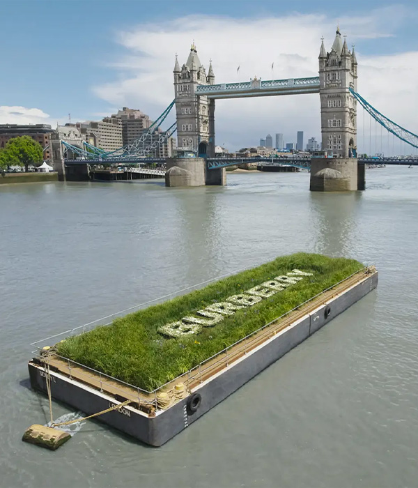 Parte esencial de la campaña de Burberry para la monarquía es el Superbloom. Un proyecto en conjunto a los Palacios Reales Históricos, que contempla un despliegue floral en los alrededores de la Torre de Londres. A la vez, The Floating Meadow. Una isla flotante, o, mejor dicho, una pradera ensamblada en el corazón del río Támesis. Compuesta por más de cinco mil plantas, la instalación pretender destacar la importancia de la biodiversidad, haciendo énfasis en el compromiso de la firma frente al cambio climático. “Todas las plantas utilizadas para esta iniciativa serán replantas por voluntarios de la empresa y seguirán formando parte de otros proyectos locales tras la conclusión del evento”, explicaron desde Burberry. Una consigna que viene a difuminar las controversias que ha enfrentado en su pasado. Por ejemplo, las de 2017, cuando fueron duramente cuestionados por quemar cerca de 32 millones de euros en ropa, accesorios y fragancias.