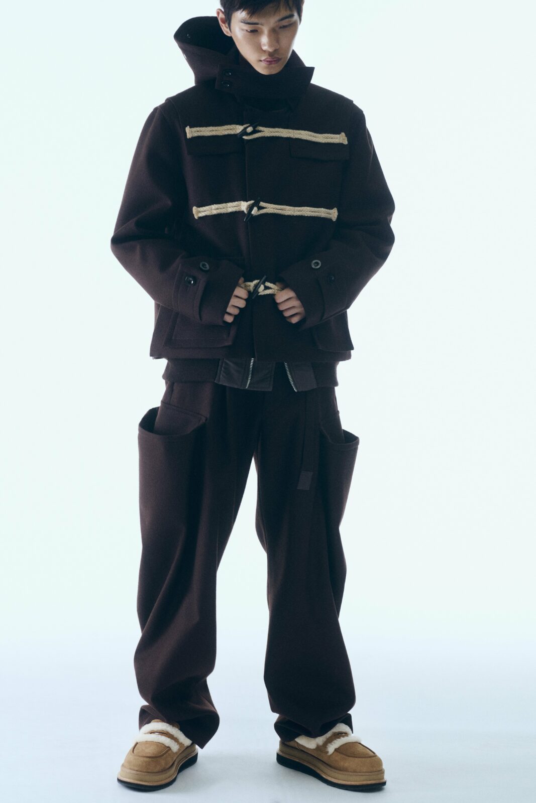 El lenguaje híbrido de Abe encuentra en UGG un terreno fértil. Las proporciones se estiran, los cierres se transforman en elementos decorativos y el volumen se convierte en una herramienta expresiva más que en una simple necesidad térmica. Las piezas, aunque familiares, tienen algo inquietante y nuevo: una elegancia que no busca aprobación, sino coherencia con la mirada experimental de Sacai. Cada par habla de una tensión controlada entre el instinto utilitario y el impulso de la creación libre.