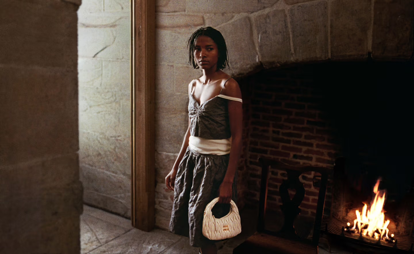 La campaña más reciente de Miu Miu, Holiday 2025 nos lleva hasta una antigua mansión isabelina en medio del campo británico, donde un grupo de jóvenes se fusiona para celebrar en un ambiente cargado de memoria y vibras nostálgicas. Con fotografías capturadas por Angela Hill en formato Super 8 y en película analógica, la narrativa visual propone un diálogo emocional entre el pasado y el presente: las murallas de ladrillo desgastado, las piedras marcadas por la historia y una chimenea legendaria contrastan con la frescura y modernidad que representan las protagonistas. Es una celebración íntima, casi como si fuera un recuerdo capturado por artistas.