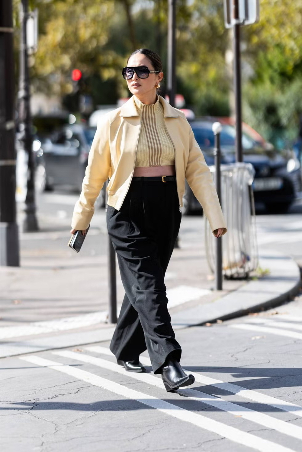 Una chaqueta en butter yellow tiene la capacidad de iluminar incluso los días más grises. Funciona perfecto en outfits de oficina combinada con denim oscuro o pantalón negro, pero también se adapta al estilo casual con shorts y sandalias planas. Su versatilidad la convierte en esa prenda clave que encaja en distintos escenarios.